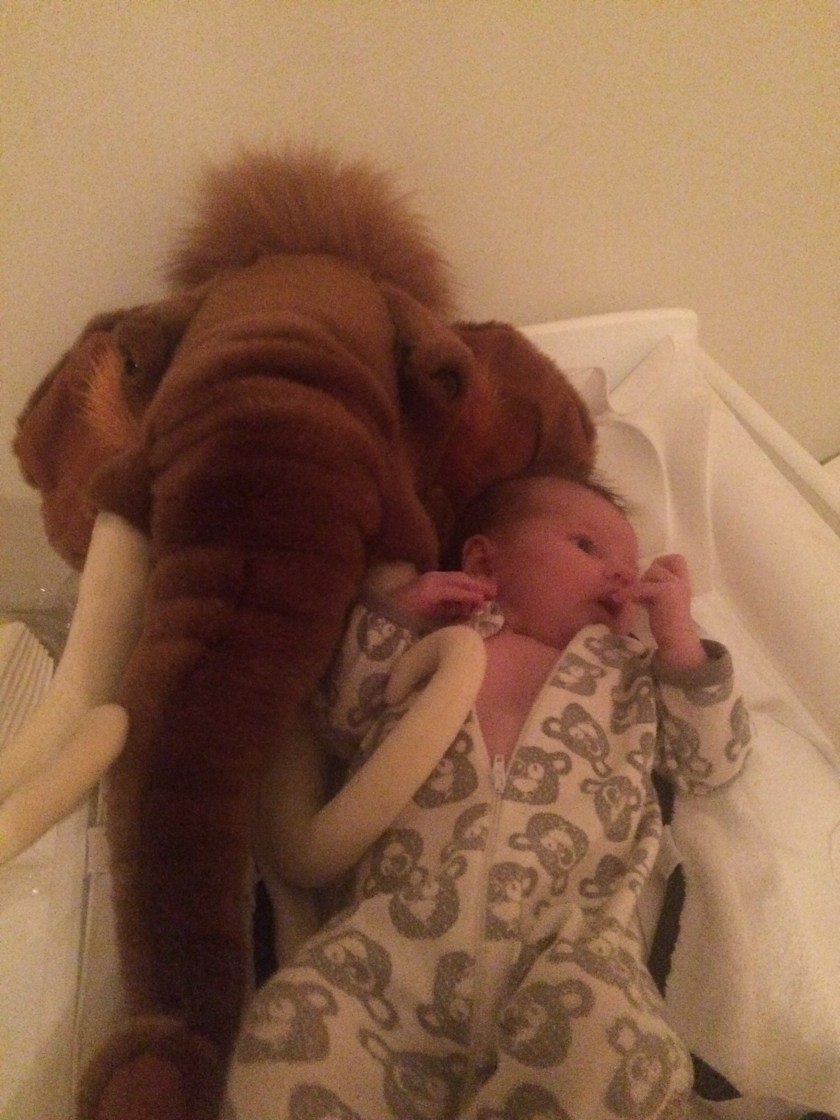 Granted, after poopscoop2 decided to get jiggy with the diapers, there was no telling what was next. Flying pigs wouldn’t have surprised me, but this guy was a bit left field. The mammoth asked if I had seen some squirrel looking for a nut. I told him I had two, but that it would be a dead squirrel who’d come looking for those.